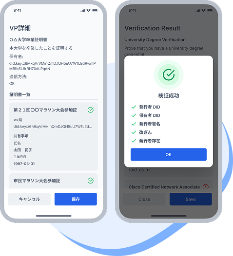 - はい、無料で証明書の発行、保管、提示、検証が利用できます。